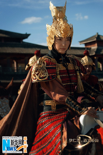 核心提示:《狄仁杰之通天帝国》昨日发布了李冰冰的最新剧照,饰演上官静儿的她分别以将军、宫女造型亮相。