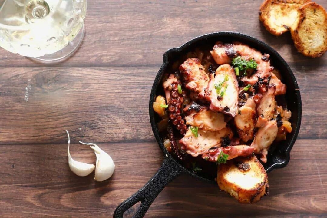 PULPO,就是章鱼的意思,在西班牙餐馆里多是只章鱼的肉(没有腿)。章鱼肉浸泡在橄榄油和胡椒里,新鲜的肉质带给人的无与伦比的美味享受,是一道大部分中国胃都能接受的美食。这道菜表面看上去好像有点川菜火辣感,但实际上一点也不辣,这主要与其用到的辣椒品种有关。